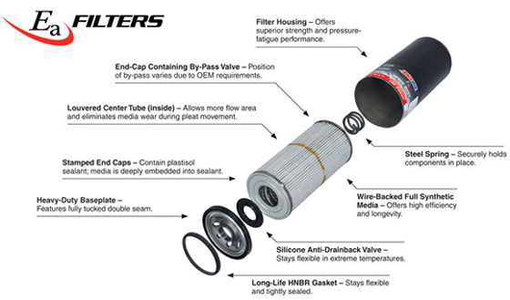 Ea® Heavy-Duty Oil Filters are made with premium-grade full-synthetic media. The